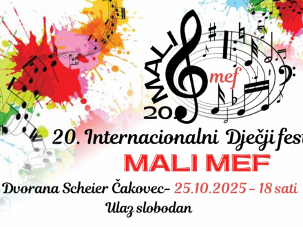 20. JUBILARNI DJEČJI FESTIVAL „MALI MEF“ Subota, 25.10 2025. u 18 sati u dvorani Scheier Čakovec