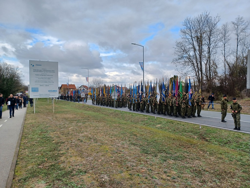 Nakon mise formirana je kolona koju su predvodili članovi Počasnog Zdruga UDVDR Podružnice Međimurske županije, gardisti Zrinske garde Čakovec, policajci PUM, supruge i članovi obitelji poginulih i nestalih hrvatskih branitelja, branitelji Vukovara, članovi braniteljskih i stradalničkih Udruga Koordinacije, građani grada Čakovca i žitelji Međimurske županije. U koloni sjećanja su nam se priključili Župan Matija Posavec, zamjenik župana Mario Medved, zamjenik župana Elvis Kralj, pročelnice Maja Odrčić, Petra Strahija, zamjenica gradonačelnice Lana Remar, pročelnik David Vugrinec, Saborski zastupnici Boška Ban, Ivica Baksa, Nenad Plevnjak iz PUM, voditelj odjela za obranu Čakovec Vlado Hranjec, Manuela Vuk Šmit iz područne jedinice Ministarstva hrvatskih branitelja Čakovec.