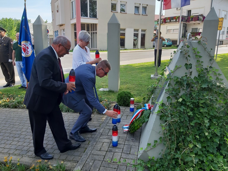 Po završetku sv. mise za Domovinu ispred ckrve formirana je kolona te se ona uputila do spomenika braniteljima „Piramidi“ gdje je položen vijenac i zapaljene svijeće za sve one koji su za samostalnu i neovisnu Republiku Hrvatsku položili svoje živote.