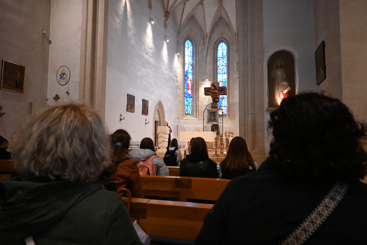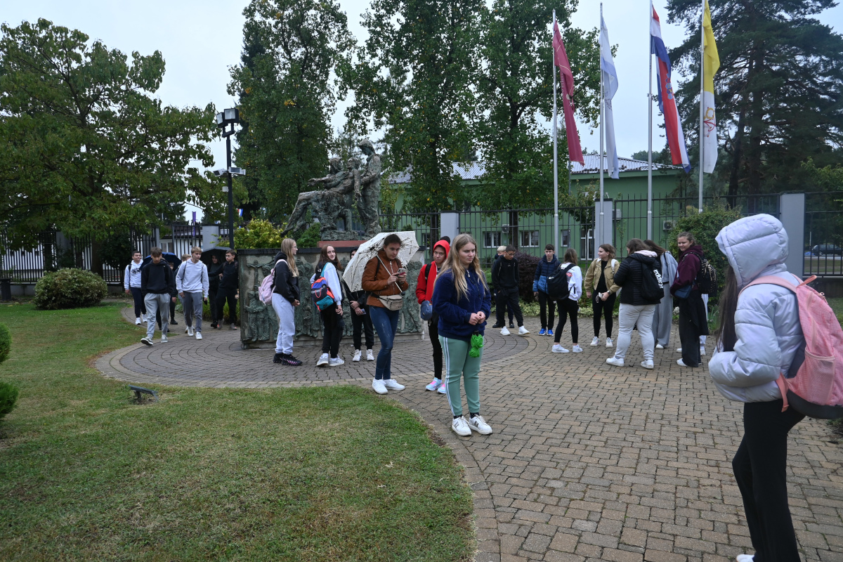 Po dolasku u Voćin učenici su kod spomenika Voćinskim žrtvama položili cvijeće i zapalili svijeće, a potom su obišli Svetište Majke Božje Voćinske.