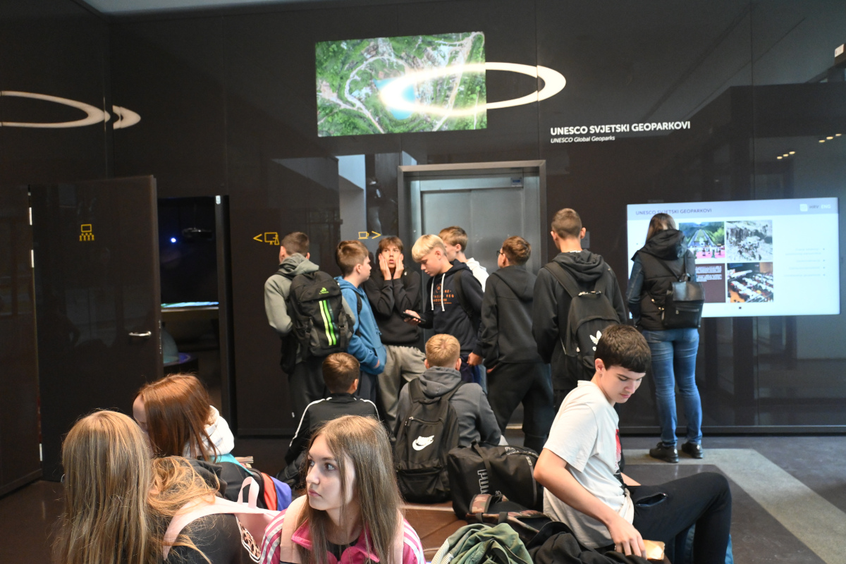 Poslije kratkog duhovnog predaha učenici su predvođeni svojim razrednicama Iviom Trupković i Martom Lončar-Vinković, te ravnateljicom škole Karmen Sklepić, u koordinaciji voditelja projekta i tajnice Društva VETERAN Ines Miljančić, obišli Geo info centar u Voćinu gdje su kroz multimedijalni i interaktivni postav upoznati s Geoparkom Papuk. Postav Geo info centra oblikovan je na suvremeni način, prilagođen posjetiteljima različitih uzrasta, stupnja predznanja i interesa. Papuk je geopark pod zaštitom UNESCO-a još od 2007. godine i član Svjetske mreže geoparkova i Europske mreže geoparkova kao prvi geopark u Hrvatskoj.