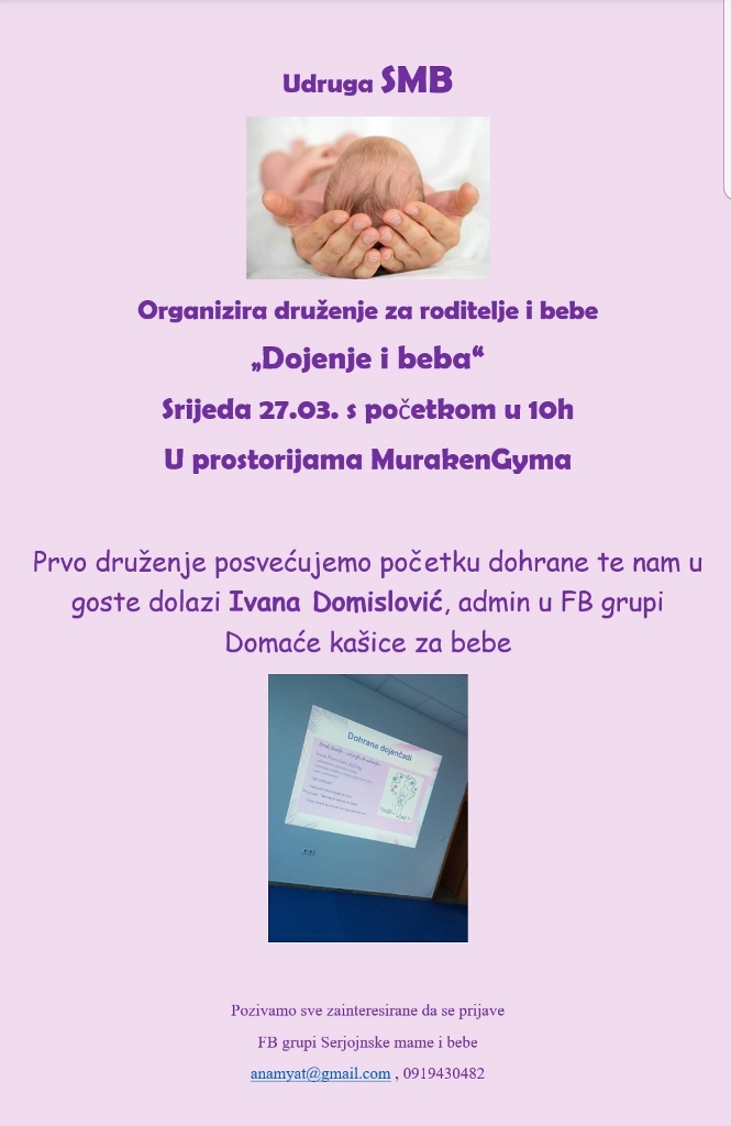 Udruga Serjojne mame i bebe poziva sve roditelje na predavanje “Dojenje i beba”, tema prvog druženja je prava dječja hrana, a predavanje će održati Ivana Domislović. Više u plakatu koji donosimo u prilogu.