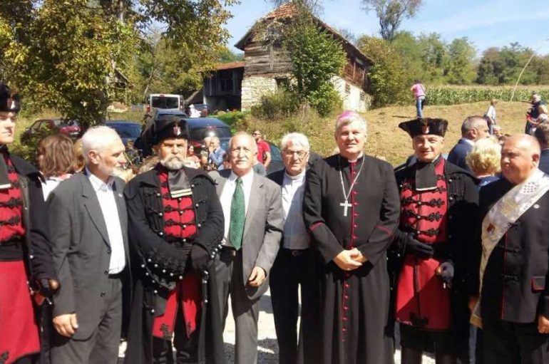 Svetu misu i blagoslov spomen crkve predvodio je kardinal Josip Bozanić, nadbiskup zagrebački uz koncelebraciju petorice biskupa, domaćina, sisačkog biskupa mons. Vlade Košića, bjelovarskog biskupa mons. Vjekoslava Huzjaka, krčkog biskupa mons. Ivice Petanjka, čiji su roditelji protjerani 1943. iz Zrina, pomoćnih zagrebačkih biskupa mons. Ivice Paška i mons. Nije Gorskoga i pedesetak svećenika iz svih krajeva Lijepe naše.