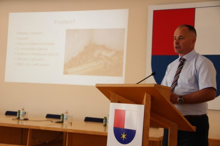 Prednosti projekta prezentirao je izv. prof. dr.sc. Antun Kostelić sa Zavoda za opće stočarstvo Agronomskog fakulteta koji je istaknuo sljedivost domaćeg mesa kao jednu od najvećih pogodnosti: „Cilj je ispitati modele koji će omogućiti uzgajivačima koza uzgoj jaradi do klaoničke težine uz minimalna ulaganja. Analizirat će se i ekonomski pokazatelji proizvodnje jaradi u svrhu ostvarenja dodatnog prihoda na farmama mliječnih koza u Međimurju. Želimo odrediti mogućnosti plasmana jarećeg mesa kao županijsku robnu marku trgovačkim lancima, mesnicama i ugostiteljima.“