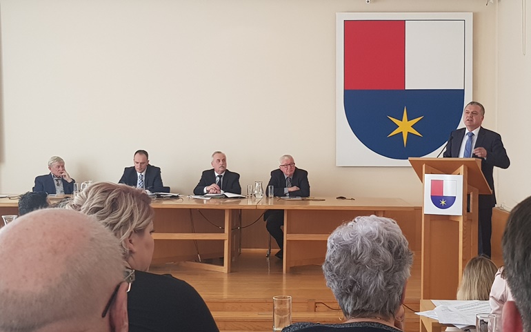 Na sjednici Skupštine Međimurske županije ministar gospodarstva, Darko Horvat, dobio je pljesak vijećnika nakon upečatljivog govora o stvaranju poticajnog okruženja za rad i poslovanje u Međimurju. Rast i razvoj poduzetništva, tehnološko unaprjeđenje i jačanje konkurentnosti stvaraju kvalitetan i konkurentan proizvod. Upravo međimurske tvrtke – Međimurski poduzetnici, zaslužuju poštovanje, jer unatoč svim preprekama dokazuju da Međimurci stvaraju kvalitetan proizvod koji može izdržati globalnu konkurenciju. Naši poduzetnici svojim kvalitetnim proizvodima otvaraju put prema novim tržištima i prepoznavanju potencijala domaće proizvodnje. Upravo je proizvodnja pokretačka snaga društva, a njezinim poticanjem čuvamo svoja radna mjesta, sprečavamo odljev kvalificirane radne snage i stvaramo pozitvno okruženje za razvoj gospodarstva. Međimurje može i mora biti lider gospodarskog rasta Hrvatske, kao što smo i nekad, ne tako davno, bili jedna od najboljih i najknkurentnijih županija.