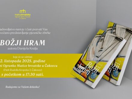 U četvrtak, 2. listopada, Ogranak Matice hrvatske u Čakovcu u dvorani uz svoje prostorije na adresi Park...