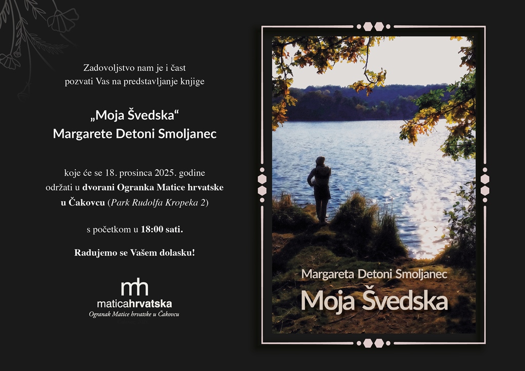 Odgovore na ova i druga pitanja vezana uz svoj boravak u Švedskoj idućeg četvrtka, 18. prosinca, s publikom će podijeliti Margareta Detoni Smoljanec, autorica knjige „Moja Švedska“, novog izdanja čakovečkog Ogranka Matice hrvatske.