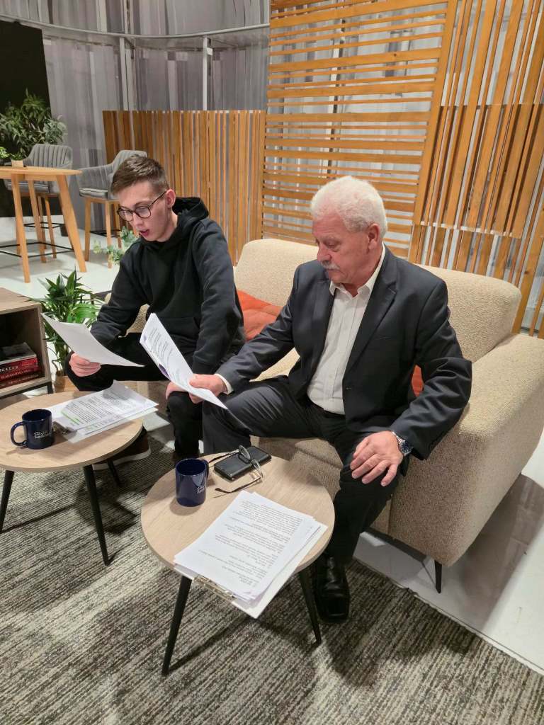 Program je otvoren glumačkom minijaturom, isječkom iz predstave „Globina”, pobjednice Festivala kazališnih amatera Međimurja 2025. Uslijedio je ležeran razgovor s Jelenom Moharić, predsjednicom KUD-a MURA i Ivanom Goričancom, predsjednikom Skupštine društva o 27 godina djelovanja društva i najljepšim naglascima iz početnih godina i najsvježije povijesti. Minuta – dvije pripale su i planovima za 2026.-tu, a posrećila se i najava mjuzikla „Svetlo ‘z črne Cimper jame” čija se praizvedba iščekuje na sceni CZK Rudar u nedjelju 7. prosinca.