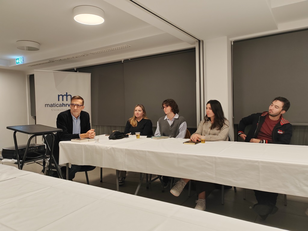 U nastavku večeri sudionici Komunikološke škole Matice hrvatske sudjelovali su u književnoj večeri s dosadašnjim predsjednikom Matice hrvatske i poznatim književnikom Mirom Gavranom.