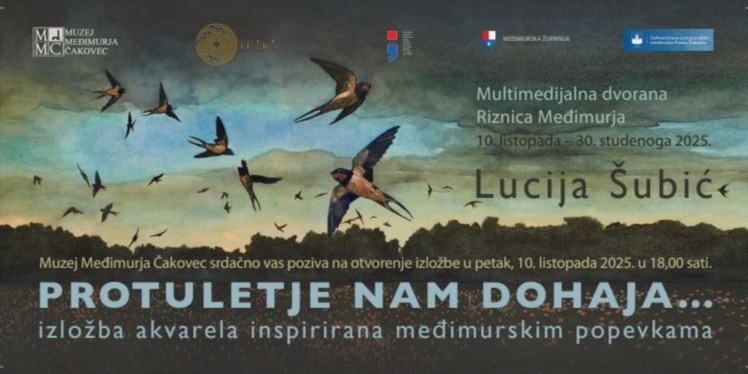 Otvorenje izložbe akvarela inspirirane međimurskim popevkama akademske slikarice Lucije Šubić u Multimedijalnoj dvorani Riznice Međimurja 10. listopada 2025. godine s početkom u 18:00 sati.