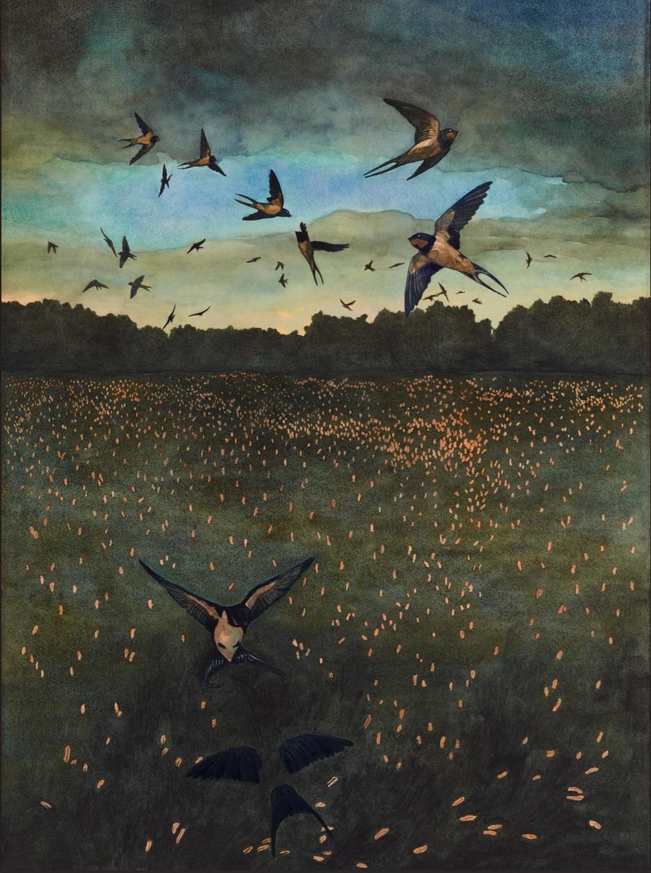 U ovom ciklusu akvarela Lucija Šubić inspirira se međimurskim popevkama i njihovim motivima ljubavi, gubitka i cikličnosti života. Za popevku je karakteristično da u jedinstvenu cjelinu spaja tekst, melodiju i usmenu interpretaciju. Upravo je toj cjelovitosti umjetnica težila u svojem serijalu, prenoseći njezin tradicionalni duh u nadrealistički likovni izričaj osluškivanjem stihova – Globoka si voda ti, Da ne miluješ človeka ftopit,i Vehni vehni fijolica, Vuprem oči vu to nebo visoko, Ribica mi plava, On se nigdar ne zbudi. Umjesto ljudskih figura, glavni akteri su ptice, ribe i predmeti iz svakodnevice koji preuzimaju njihove emocije. Autorica spaja vedre proljetne motive s tamnim, prigušenim tonovima pozadine, stvarajući intimne prizore na granici stvarnoga i nestvarnoga.