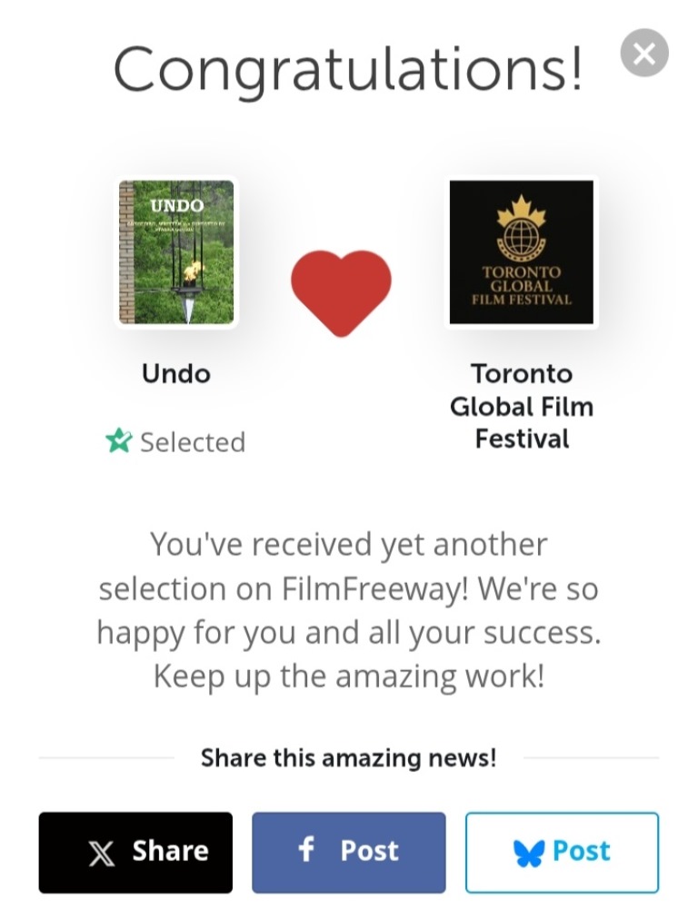 Selektori festivala očito su prepoznali film „Poništiti“ kao izniman doprinos filmskom promišljanju ekoloških tema, a uvrštenje u službenu selekciju Toronto Global Film Festivala veliko je priznanje ne samo za autoricu, nego i za hrvatsku filmsku zajednicu, potvrđujući da domaća nezavisna produkcija može ravnopravno stati uz bok svjetskim ostvarenjima.