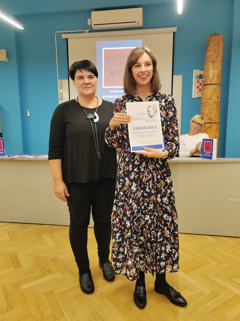 U četvrtak, 25. rujna, u sklopu ovogodišnjih Dana Kalmana Mesarića u multimedijalnoj dvorani Muzeja „Croata Insulanus“ Prelog održano je svečano predstavljanje novog izdanja knjige „Kozmički žongleri“ ovog najznačajnijeg preloškog pisca. Kao što je u uvodnom govoru istaknula Mirjana Hržić, dugogodišnja voditeljica ovog projekta, ova je knjiga – jubilarna deseta izdana u sklopu Dana Kalmana Mesarića od njihovog prvog održavanja – još jednom rezultat suradnje s Ogrankom Matice hrvatske u Čakovcu.