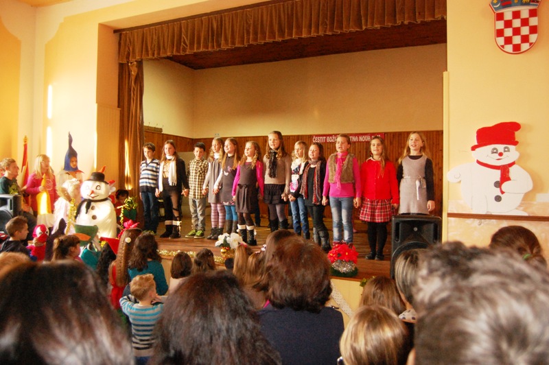 Učenici 2. i 4.razreda nastupili su zajedno u glazbeno-scenskoj igri pod nazivom “Strašna otmica djeda Mraza”. Njihovi učitelji Tajana Rihtarec Višnić i Marinko Pintarić sami su autori teksta i koreografije. A da su i oni sami velika djeca pokazali su kad su uskočili u kostime vještice i djeda Mraza te, ravnopravno s djecom, odigrali cijelu predstavu. Publika je burno pozdravila predstavu,nasmijana do suza. U prvom redu su se razdragano smiješili naš gradonačelnik,gospodin Srpak te ravnateljica škole Marijana Trstenjak. Učenici i učitelji drugog i četvrog razreda zahvaljuju se gospođi Aleksandri Ivanovni Mikulaj, mami Ivana Mikulaja, koja je uložila puno vremena i truda za izradu kostima i scene.