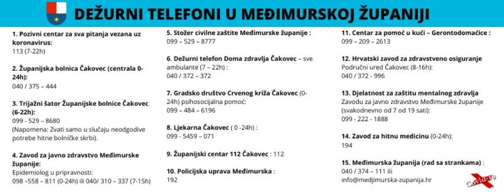 „Bitno je spomenuti da se svaki dan srećem ljude koji daju svoj maksimum u suzbijanju koronavirusa u Međimurju. Danas se želim posebno zahvaliti djelatnicima Zavoda za hitnu medicinu koji u ovih tjedana imaju do 40% više poziva i to je najvjerojatnije zbog toga što građani znaju broj Hitne službe napamet i zovu automatski. Djelatnici Hitne službe, hvala Vam na strpljenju, a posebno hvala medicinskim sestrama u dispečerskom centru koje usmjeravaju pacijente na dežurne telefone. Ovo su izazovna vremena, ali vjerujem da ćemo zajedničkim radom uspjeti sve prevladati.“ – rekao je župan Matija Posavec.