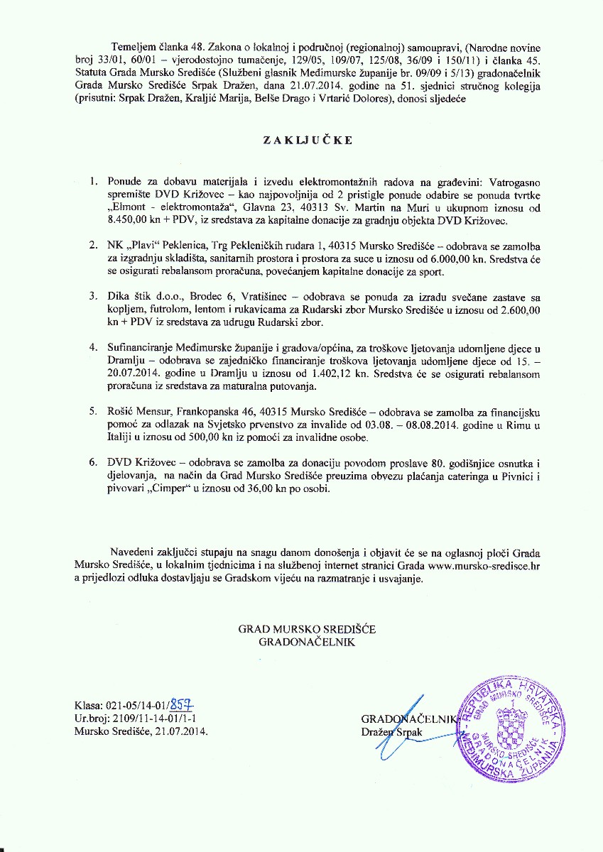 Objavljeno: 21. srpnja 2014 Autor: RUDARSKI ZBOR DOBIVA SVEČANU ZASTAVU – 51. SJEDNICA STRUČNOG KOLEGIJA Podijeli: ZAKLJUČCI 51. SJEDNICE STRUČNOG KOLEGIJA GRADONAČELNIKA Podijeli: