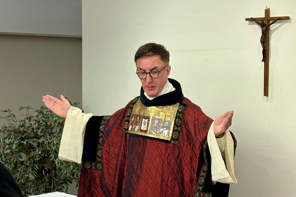 Misno slavlje predvodio je voditelj Hrvatske katoličke misije u Bruxellesu p. Anastazio Perica Petrić. „Škabrnja se širi do Vukovara, Vukovar do Dubrovnika, preko svih područja gdje su stradali nevini ljudi. Dan sjećanja je teška muka: prisjećamo se svih boli i trenutaka, ali se i uzdižemo. Zato smo večeras okupljeni, da budemo oni koji će svjedočiti i reći: Gospodine, neka se to nikada više ne dogodi. Neka bude mir po nama, po Domovini, po cijelome svijetu“, poručio je pater Anastazio.