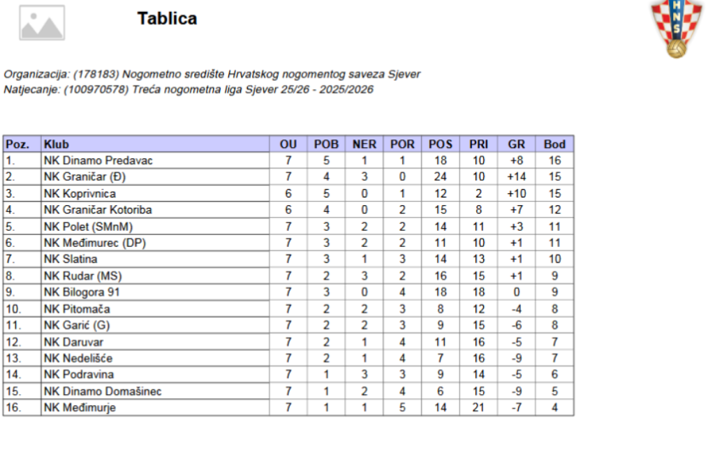 Rudar iz Murskog Središća u 7. kolu 3. NL Sjever poražen je na svom terenu od ekipe Dinama iz Predavca rezultatom 0:1.