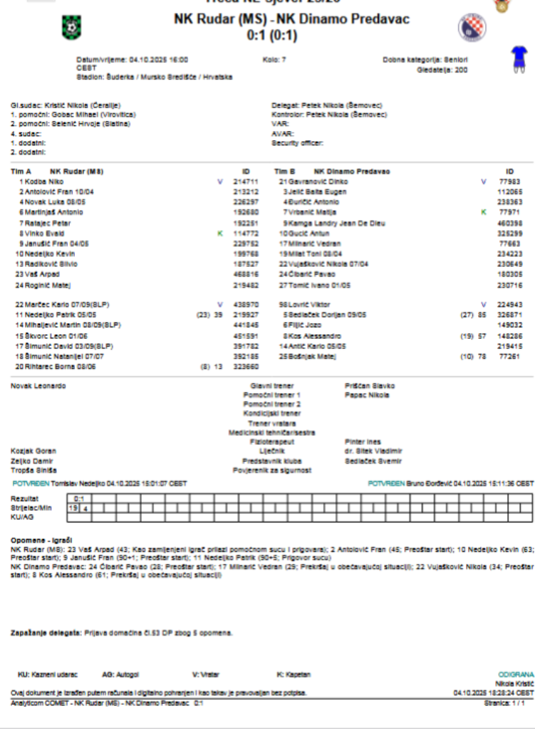 Bila je to utakmica koju je Rudar odigrao borbeno, no ne dovoljno kvalitetno za nažalost nešto više od poraza, a ako se tome pridoda još očajno suđenje suca Kristića rezultat je takav kakav jest.