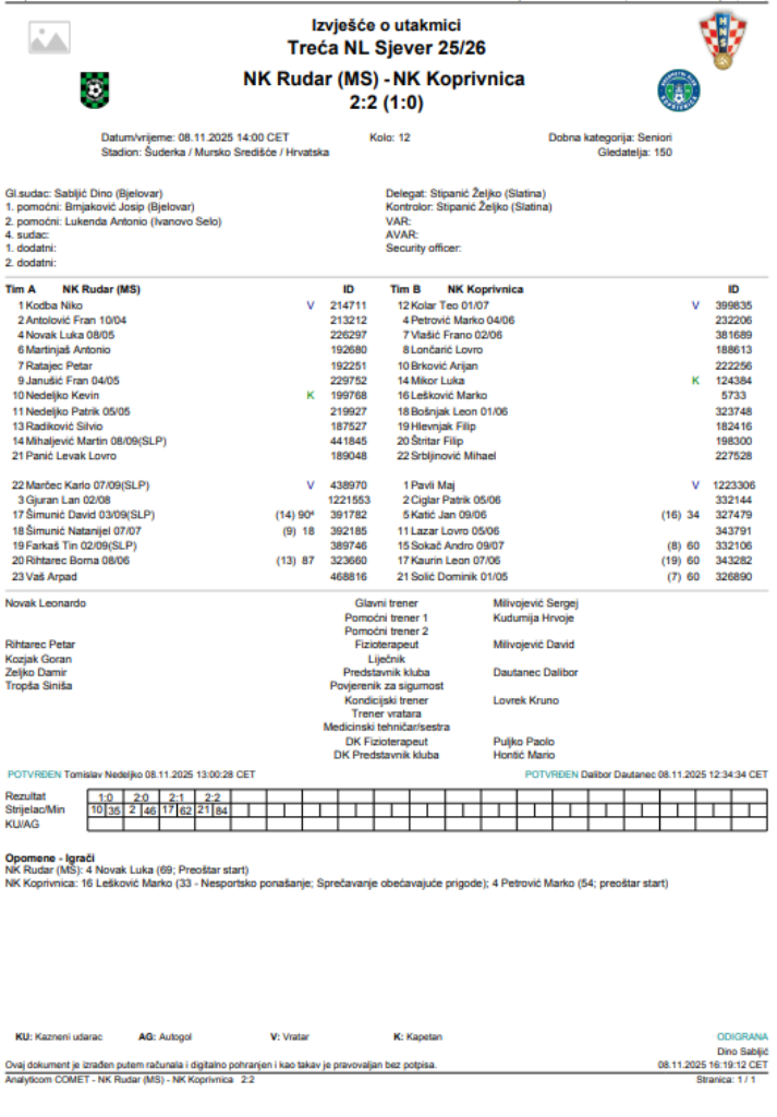 Imao je Rudar vodstvo od 2:0 no nažalost Rudarova mladost nije uspjela zadržati taj rezultat do kraja. Veći roster igrača za izmjene Koprivnice svakako je jedan od razloga što Rudar nije uspio sačuvati sva tri boda.