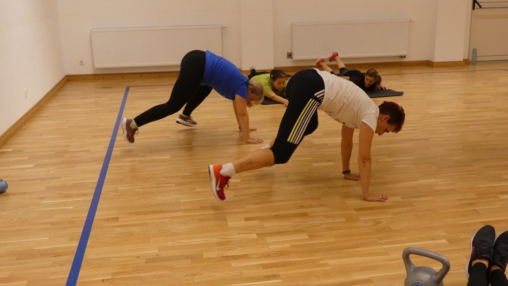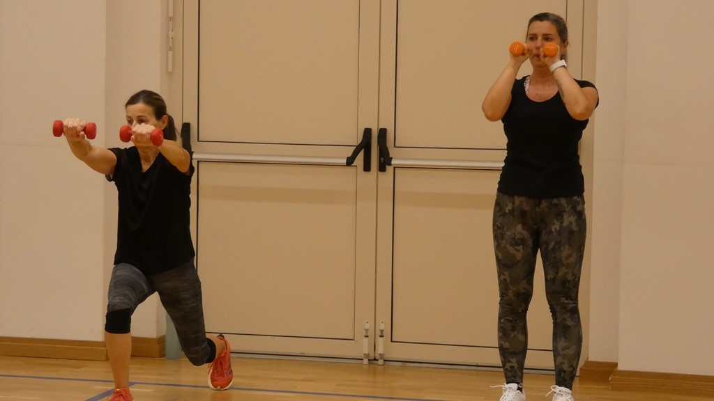 Prva aktivnost bila je namijenjena ženama srednje i starije dobi. Održane su vježbe sa malom pilates gumom, usmjerene na aktivaciju svih mišićnih skupina. Naglasak je stavljen na važnost vježbanja s opterećenjem za ovu dobnu skupinu, jer ono pridonosi očuvanju mišićne mase, poboljšanju ravnoteže i općeg zdravlja te prevenciji osteoporoze.