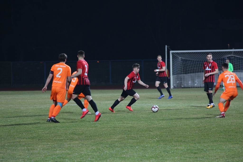 Obje momčadi krenule su otvorenog garda, žustro tražeći pogodak u samom početku. Domaćini su krenuli u utakmicu bez kartoniranog Tkalčića i ozlijeđenih Patafte , Režića i Fadića ,dok se gostima na posljednjem treningu ozlijedio mladi reprezentativac Bulat. Prvu prigodu u 9. minuti za Šibenik nije iskoristio napadač iz Gane Prince jer je u posljednji trenutak opasnost otklonio Hranilović. Tempo utakmice je bio više nego dobar , a akcije su se smjenjivale s jedne i druge strane. U 15. minuti gužva pred domaćim golmanom Galošijem , a opasnost otklanja Novoselec. Nakon toga prigoda za Munivranu koji je opalio s dvadesetak metara, a Labrović brani.