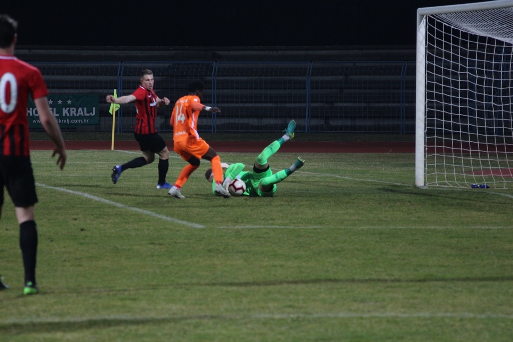 Domaći napadač je bio prava napast za gostujuću obranu , u 27. minuti se probio po lijevoj strani , ušao u kazneni prostor i uputio udarac u suprotni kut, a Labrović je uspio skrenuti loptu u korner iz kojeg Međimurje ima novu prigodu . Najviše je skočio Pušić , zahvatio loptu glavom koja je stigla do Hranilovića koji s pet metara nije uspio savladati gostujućeg vratara. Iako je u prvom dijelu upućeno čak trinaest udaraca ( Međimurje 8, Šibenik 5 ),od kojih sedam u okvir na odmor se odlazi bez golova. U nastavku koji nije bio tako zanimljiv kao prvi dio, igralo se uglavnom između dva šesnaesterca, bez nekih šansi, Šibenik je imao terensku inicijativu, dok je domaćin čekao kontru koja nije dolazila. Nešto opasnija situacija viđena je u 75. minuti kada je Munivrana ušao u kazneni prostor iskosa s lijeve strane, ali je pucao visoko preko vrata. Još jednu prigodu domaćini ne koriste desetak minuta prije kraja nakon prekida kada mladi Pajić udarcem glavom gađa, ali u vratara.