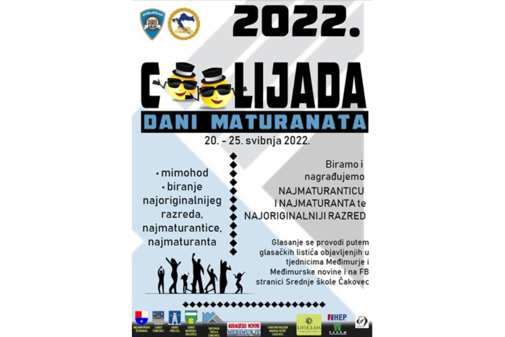 Krajem svibnja nastavlja se s provođenjem preventivnog projekta “Coolijade”, kojeg su osmislili policijski službenici (“preventivci”) Policijske uprave međimurske, sada već davne 2004. godine. “Coolijada” je prvenstveno zamišljena kao preventivni projekt, koji kroz razne edukativne i zabavne sadržaje postiže primarni cilj, a to je usmjeravanje i poticanje maturanata na pozitivno ponašanje. Provođenjem mnogobrojnih aktivnosti tijekom „Coolijade“ preveniraju se razni oblici međuvršnjačkog nasilja, kao i druga neprihvatljiva te štetna ponašanja. U protekle dvije godine (2020. i 2021. godine) zbog pandemije koronavirusa provođenje projekta bilo je privremeno obustavljeno.
