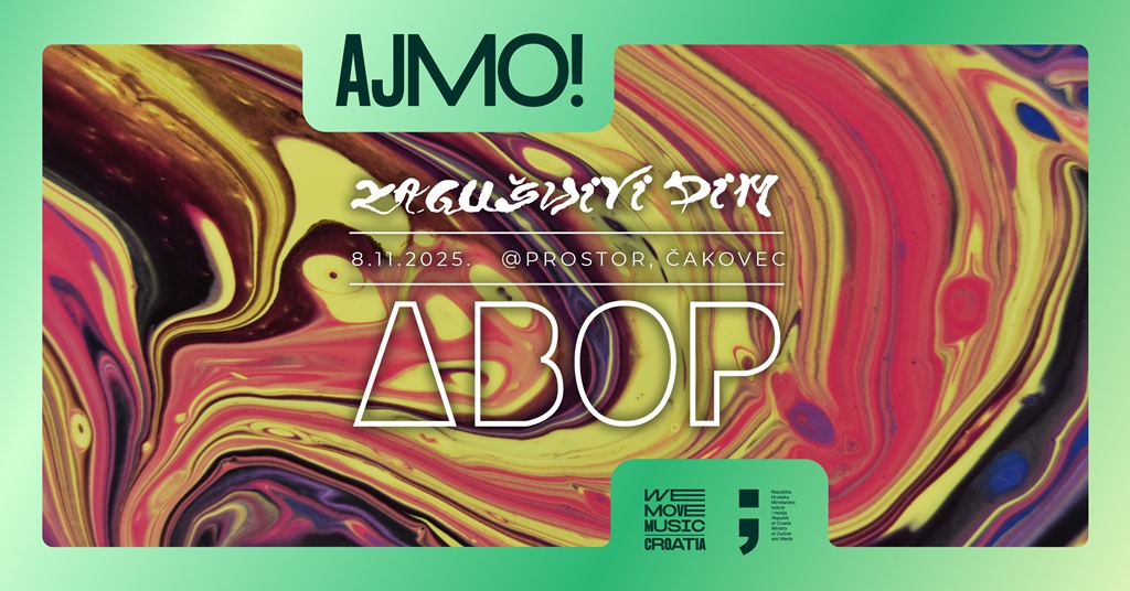 Prostor ponovno postaje mjesto nezaobilaznog glazbenog susreta. Nakon što je prošle godine projekt AJMO! pokazao da Čakovec itekako ima publiku željnu eksperimenta, ritma i atmosfere koja se pamti, stiže novo izdanje, s prvim od četiri pomno birana koncerta. Već 8. studenog u Prostor dolaze Zagušljivi dim i ABOP – dvije postave koje, svaka na svoj način, pomiču granice žanra i doživljaja glazbe uživo.