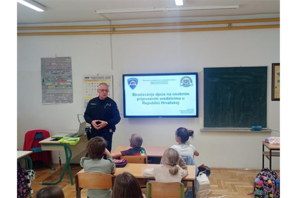 S ciljem smanjenja prometnih nesreća u kojima stradavaju djece, učenici su educirani i informirani o zakonskim obvezama, kao i dobnim granicama za vozače bicikla, osobnih prijevoznih sredstava (električnih romobila) te pomoćnih pješačkih sredstava (koturaljke, role, i slično). Na samom kraju predavanja učenicima su podijeljene edukativne brošure “Biciklisti pažnja” i “Osobno prijevozno sredstvo“.
