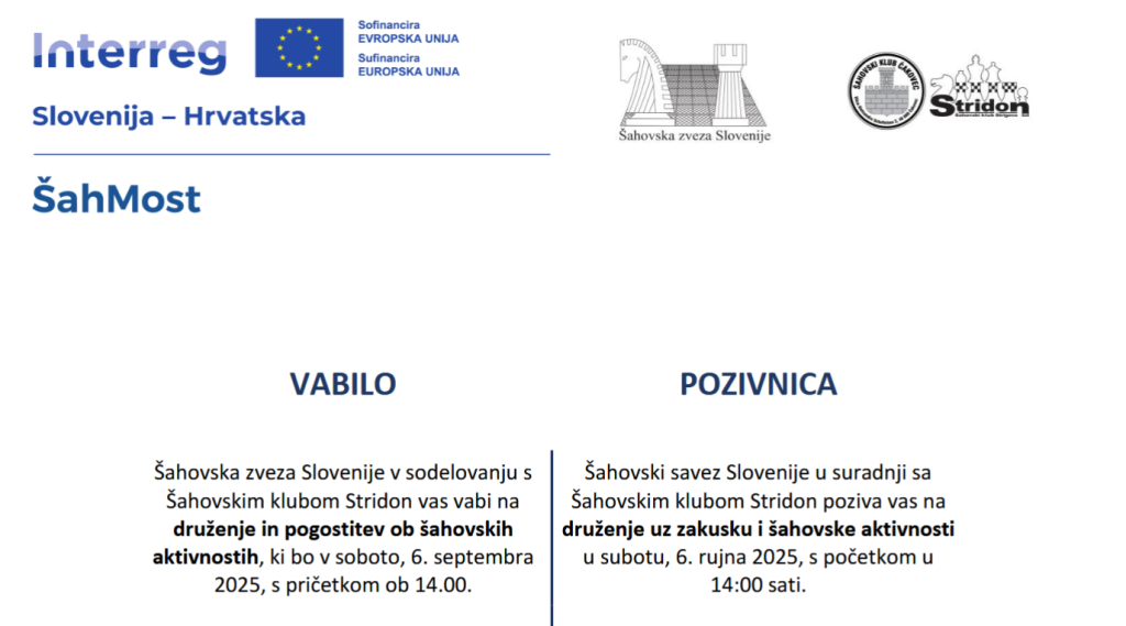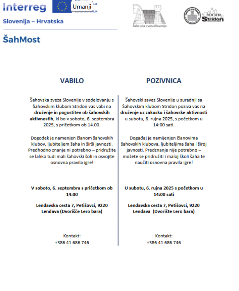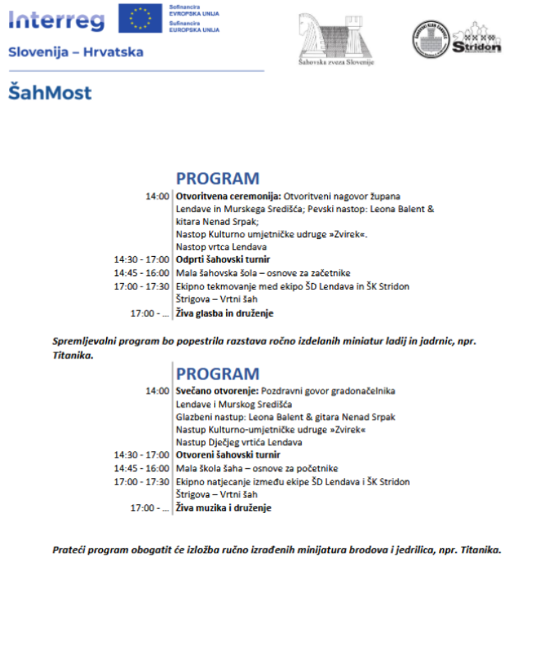 17:00 – 17:30 Ekipno natjecanje između ekipe ŠD Lendava i ŠK Stridon Štrigova – Vrtni šah