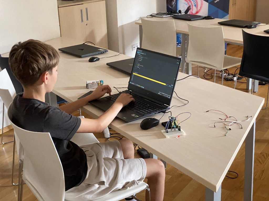 Posebno zanimanje izazvala je radionica „Izradi svog kućnog AI asistenta“, koju je vodio Jakov Biškup. Tijekom četiri dana polaznici su uz pomoć Python programskog jezika i Google API-ja izrađivali vlastite pametne asistente koji razumiju i odgovaraju na glasovne naredbe na hrvatskom jeziku. Povezivanjem softvera s Arduino mikroračunalima, djeca su uspješno izrađivala prototipove koji mogu upravljati svjetlima, prozorima i senzorima – spajajući umjetnu inteligenciju i elektroniku u funkcionalne projekte.