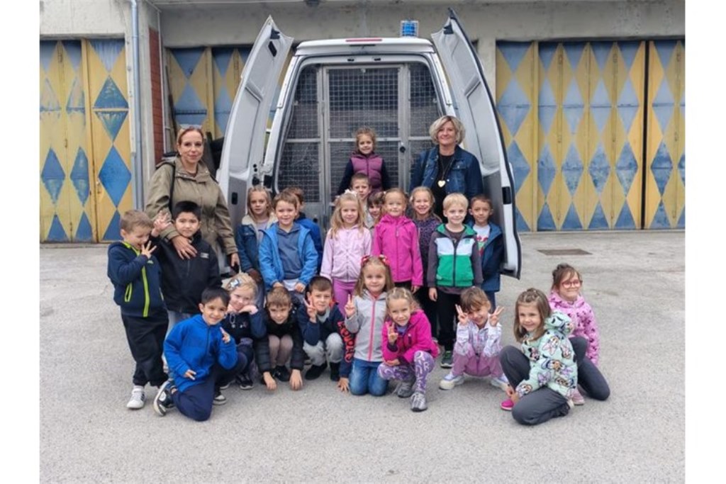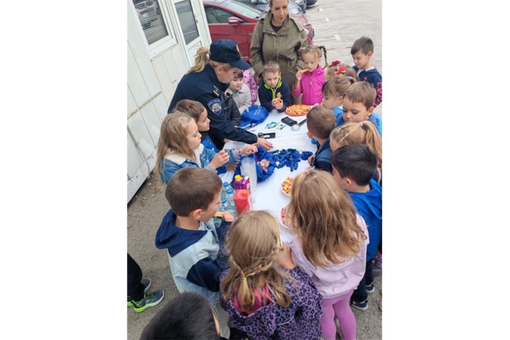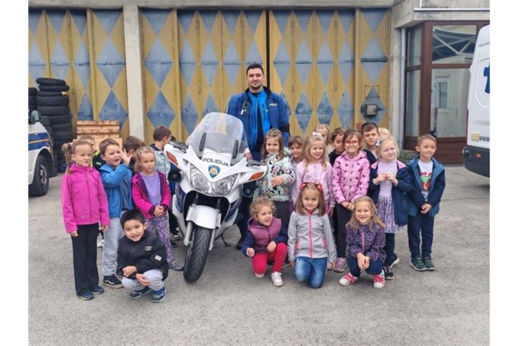 U nastavku posjeta policijski službenik Postaje prometne policije upoznao je djecu sa svojim svakodnevnim radom te im pokazao vozni park: Mobilni preventivni centar policije, motocikl i druga službena vozila koja policija koristi u izvršavanju svojih zadaća. Djeci je najveće veselje bilo sjesti na policijski motocikl te vidjeti upaljena rotacijska svjetla te čuti policijsku sirenu. Policijska službenica za prevenciju iz Ureda načelnika predstavila im je i pojam daktiloskopije, objasnivši kako se radi o metodi identifikacije putem otisaka prstiju. Djeci je pojašnjeno kako nitko nema iste otiske prstiju te da se oni koriste za otkrivanje počinitelja kaznenih djela. Uzbuđeno su isprobavali uzimanje vlastitih otisaka i uspoređivali ih međusobno.