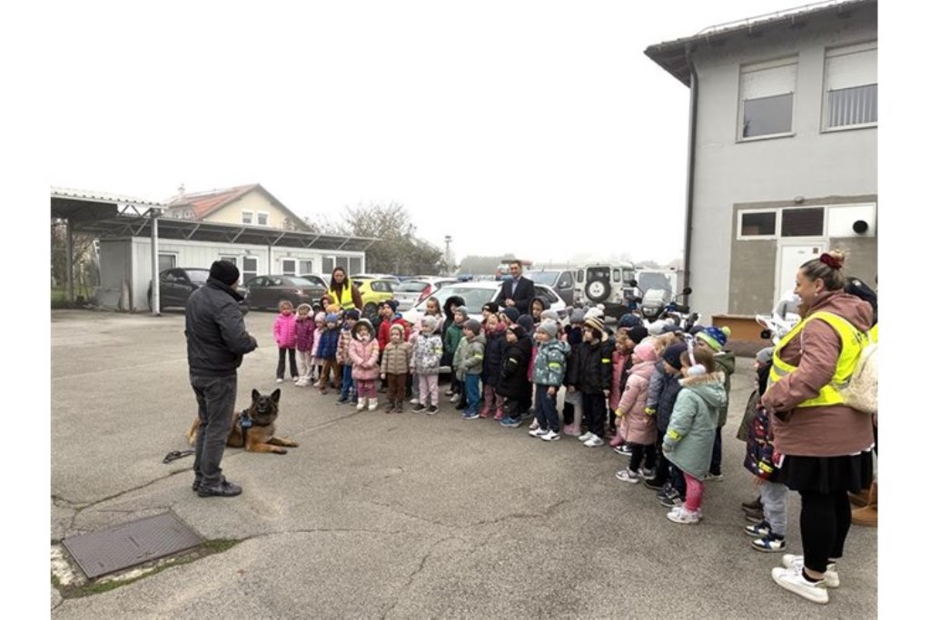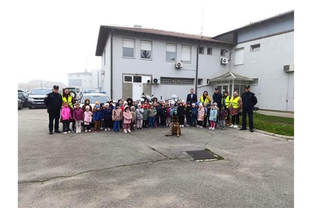 Veliko oduševljenje izazvao je obilazak prostorija policijske postaje. Najviše ih se dojmilo operativno dežurstvo i šalter za izdavanje osobnih iskaznica, gdje su djeci za uspomenu izuzeti otisci prstiju. U dvorištu postaje djeca su razgledala policijska vozila i opremu, a posebno ih je oduševio susret sa službenim psom Lokom. Uz nadzor vodiča, Loka je pokazala svoje vještine – poslušnost, koncentraciju i učinkovitost. Mališani su s velikim veseljem promatrali pokaznu vježbu pronalaska droge te su se fotografirali s Lokom i policijskim službenicima.