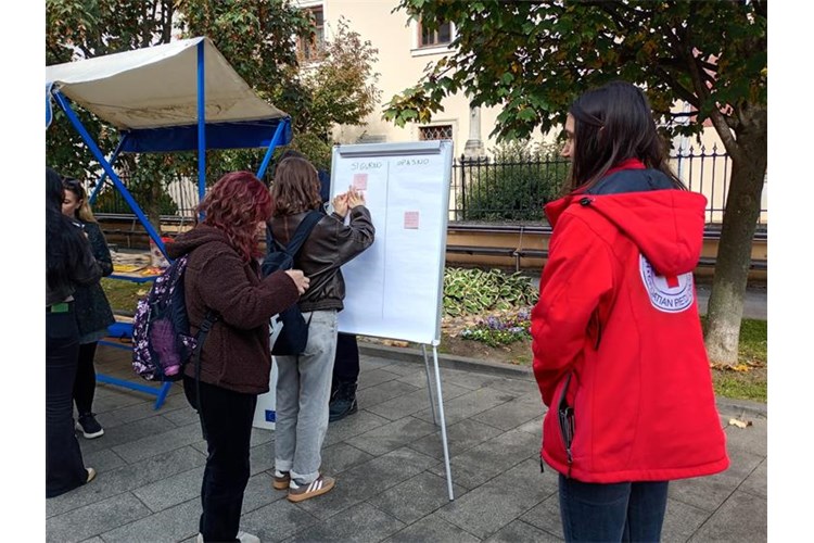 Info pultu pristupili učenici Gimnazije Josip Slavenski Čakovec i Srednje škole Čakovec te su na Zidu podrške (koji su izradili djelatnici Crvenog križa) zalijepili pisane poruke vezane uz temu suzbijanja trgovanja ljudima te tako dali podršku u osvještavanju i senzibilizaciji građana te poticanja na prijavljivanje sumnje na takve kriminalne aktivnosti.